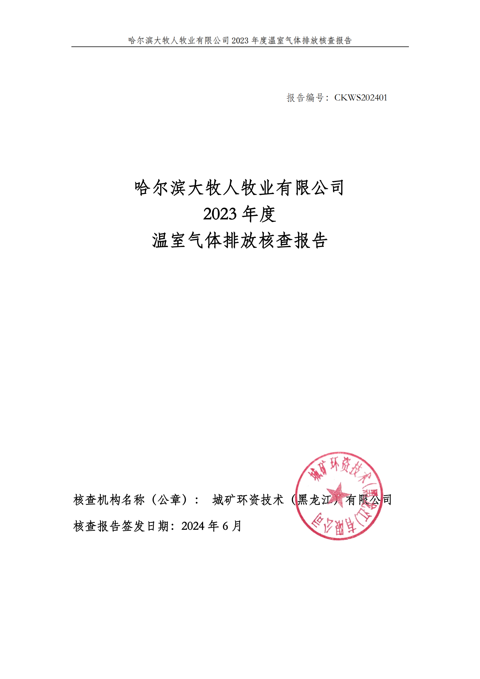 哈尔滨凯时AG牧业有限公司2023年度温室气体排放核查报告