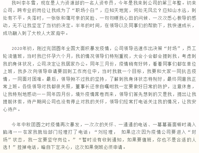 还记得在应聘表上写下的八个字“不忘初心,方得始终”,在凯时AG我找到了前进的偏向,长风破浪会有时,直挂云帆济沧海,虽然我在专业上另有许多缺乏,但我会继续坚持我的初心,与凯时AG同心同行同创。